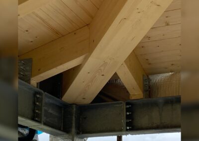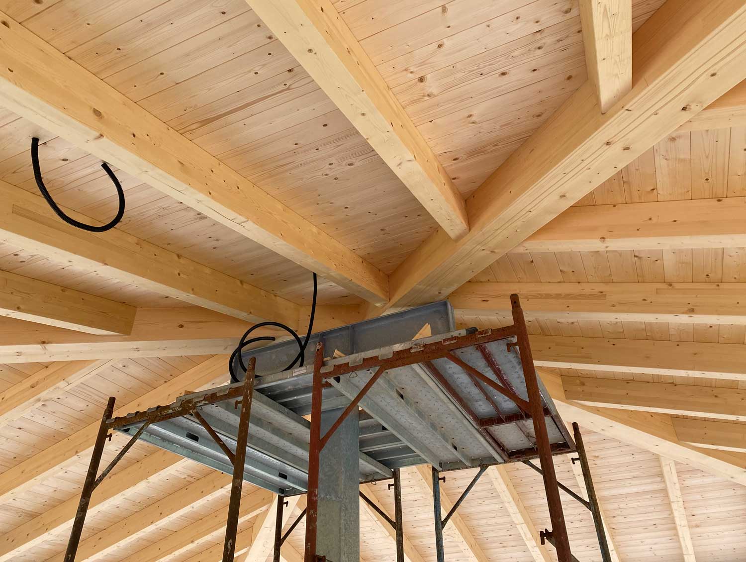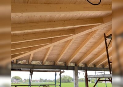 • Copertura con travi in legno che offrono robustezza e un aspetto naturale ed accogliente, sormontata da travetti in legno con doppio assito.