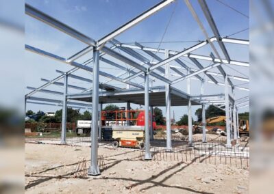 La struttura portante, interamente realizzata con colonne in acciaio e travi in acciaio e/o legno, assicura leggerezza e grande resistenza, rendendo questi edifici ideali per un’architettura contemporanea e perfetta.